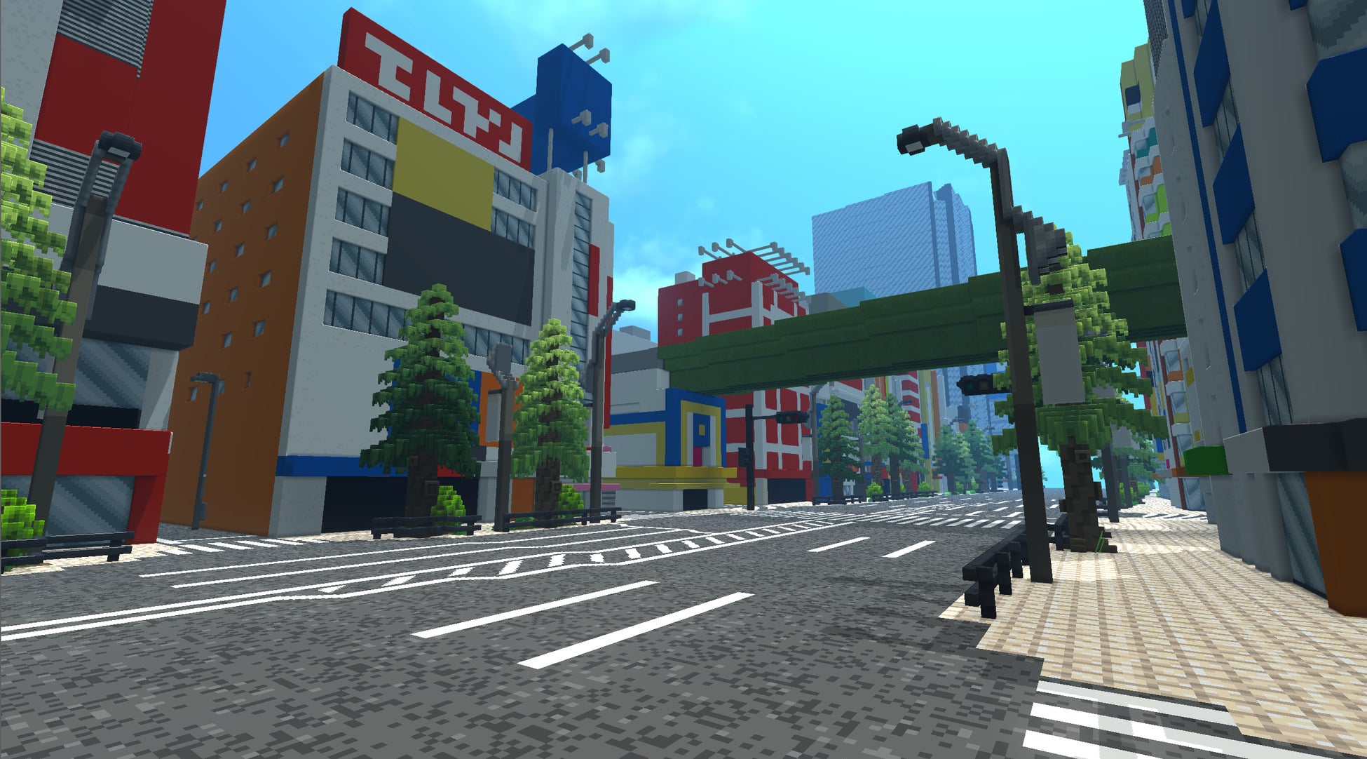本日公開する秋葉原ワールドは国土交通省が主導する日本全国の3D都市モデルのオープンデータ化プロジェクト「PLATEAU」が提供する3D都市モデルを、自社開発のAI開発キットを用いてボクセルに変換することで秋葉原の街並みを短期間で構築しています。