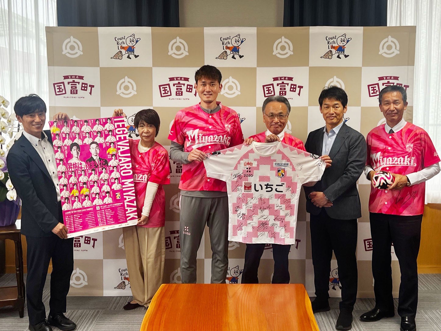 宮崎県国富町(町長:日髙 利夫)は、包括連携協定を結ぶプロサッカークラブ運営法人株式会社テゲバジャーロ宮崎(代表取締役会長:石原 実、代表取締役社長:宮本 功)のJ2昇格を祝し、地域一丸となった応援活動を推進しています。