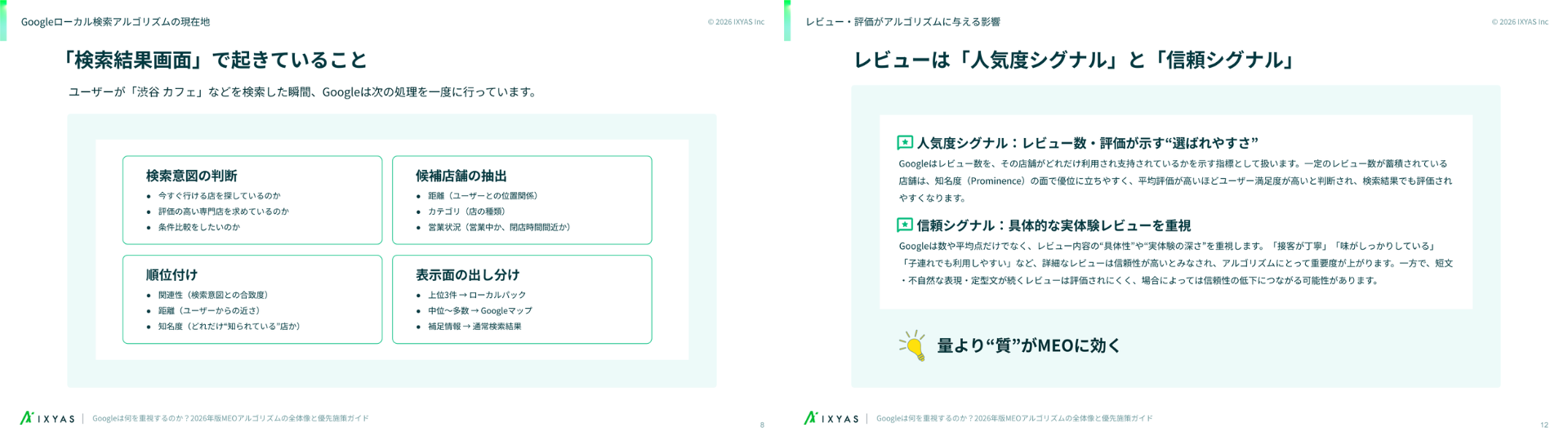 AI搭載型の店舗情報発信・分析プラットフォーム「STOREPAD(ストアパッド)」を提供するイクシアス株式会社(本社:東京都中央区、代表取締役社長 CEO:内藤 崇司)は、Google公式情報を基に2026年のMEO戦略に必要な要点を整理した新資料『Googleは何を重視するのか?2026年版MEOアルゴリズムの全体像と優先施策ガイド』を公開しました。