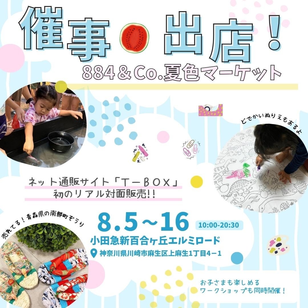 東日印刷株式会社(本社:東京都江東区、社長:西川光昭、以下TONICHI)のネット通販サイト「T-BOX」は、8月5日~16日までの12日間、小田急新百合ヶ丘エルミロード(場所:神奈川県川崎市)で行われる特別催事「884&co. presents夏色マーケット」に出店いたします。これまでネット通販のみで販売をしてきたT-BOX初のリアル対面販売となります。