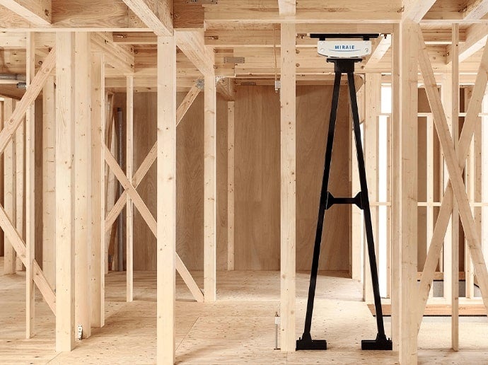 今回の見学会では、主要構造部分以外にも、弊社の超高気密・高断熱住宅に欠かせない、吹付ウレタンフォーム断熱材「アクアフォーム」と地震の揺れを最大90%低減する制振ダンパー「MIRAIE Σ」を直接確認いただけます。