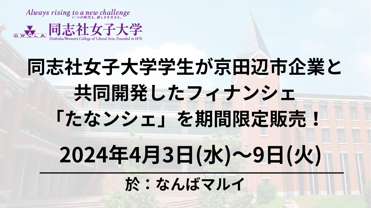 【4月3日(水)~9日(火)於:なんばマルイ】同志社女子大学学生が京田辺市企業と共同開発したフィナンシェ「たなンシェ」を期間限定販売!