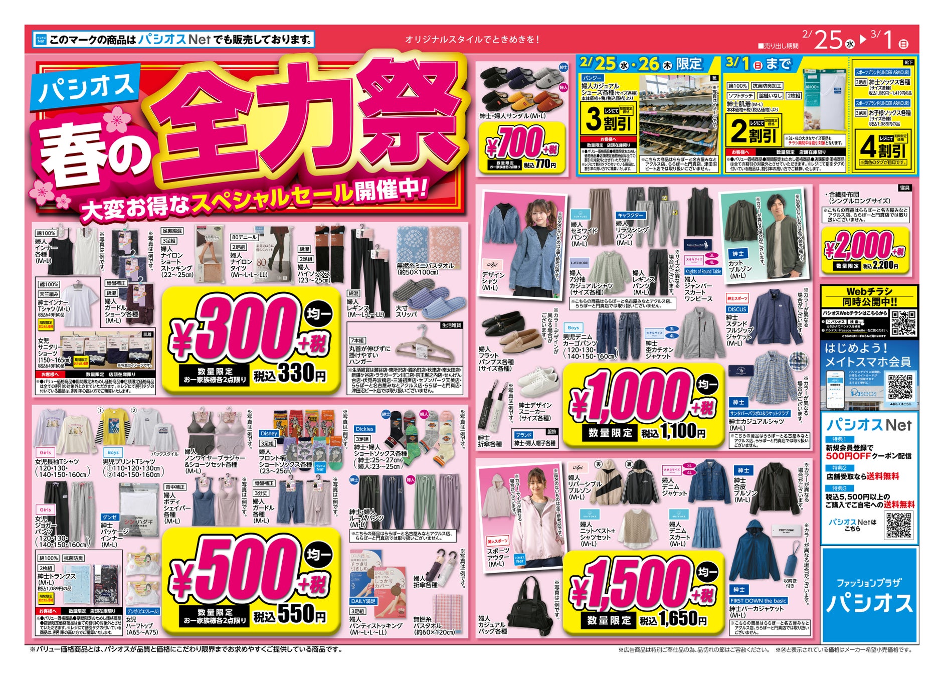 [2/25(水)~3/1(日)]【春の全力祭】をファッションプラザ[パシオス]にて開催!