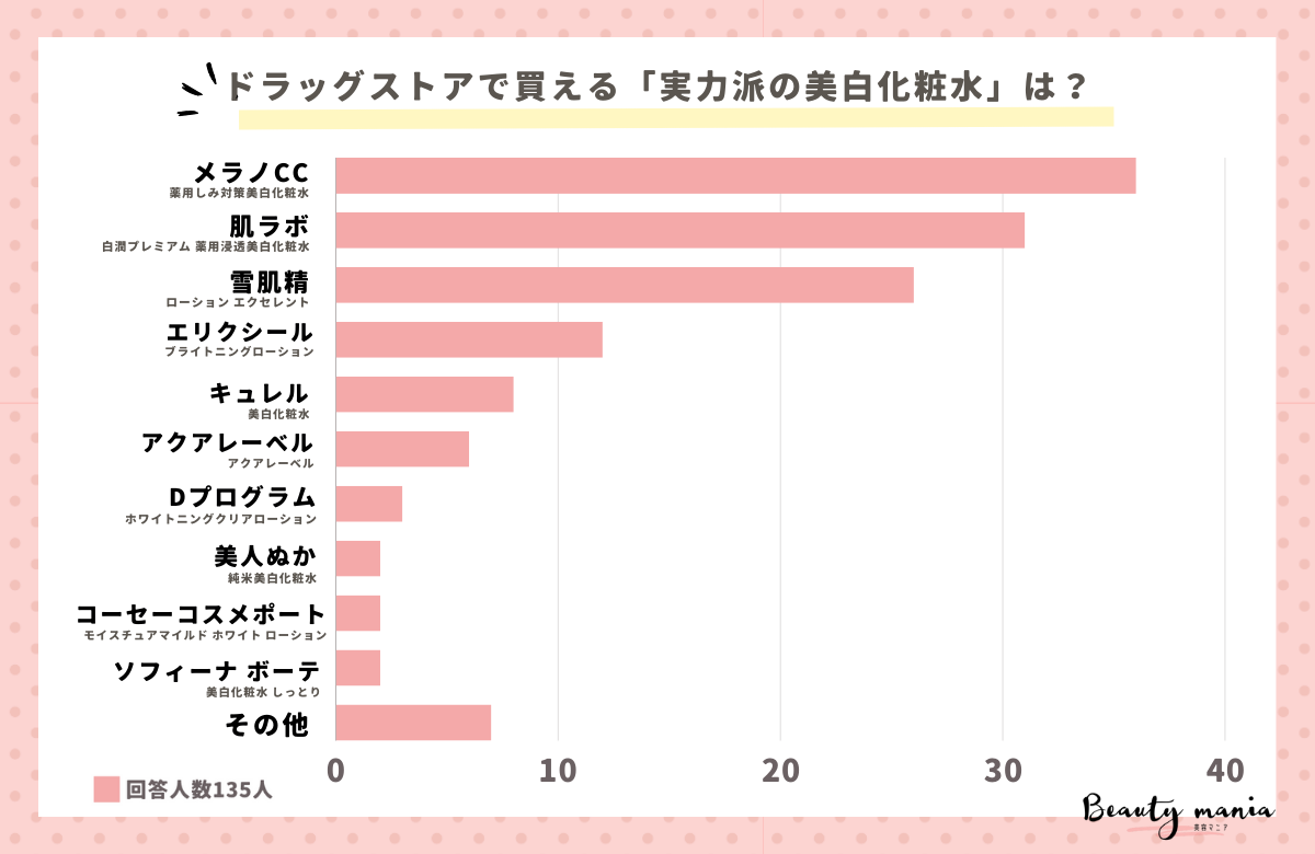 アンケート内容:ドラッグストアで買える「実力派だと思う美白化粧水」教えてください