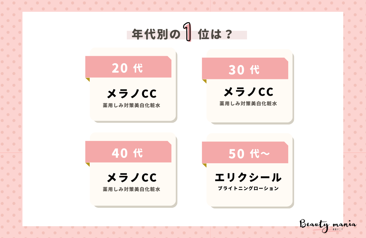 40代の1位『メラノCC:薬用しみ対策美白化粧水』(25.0%)