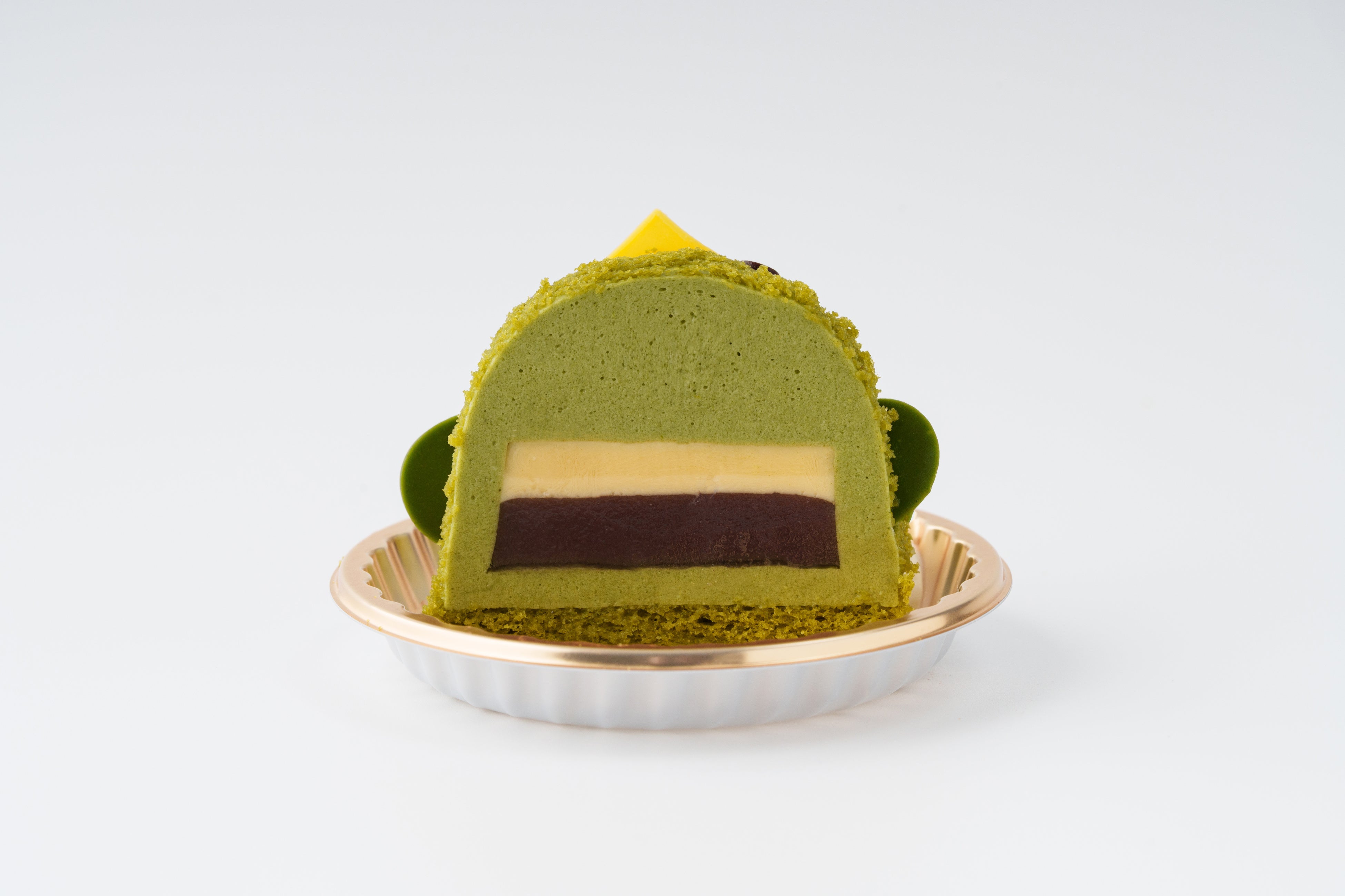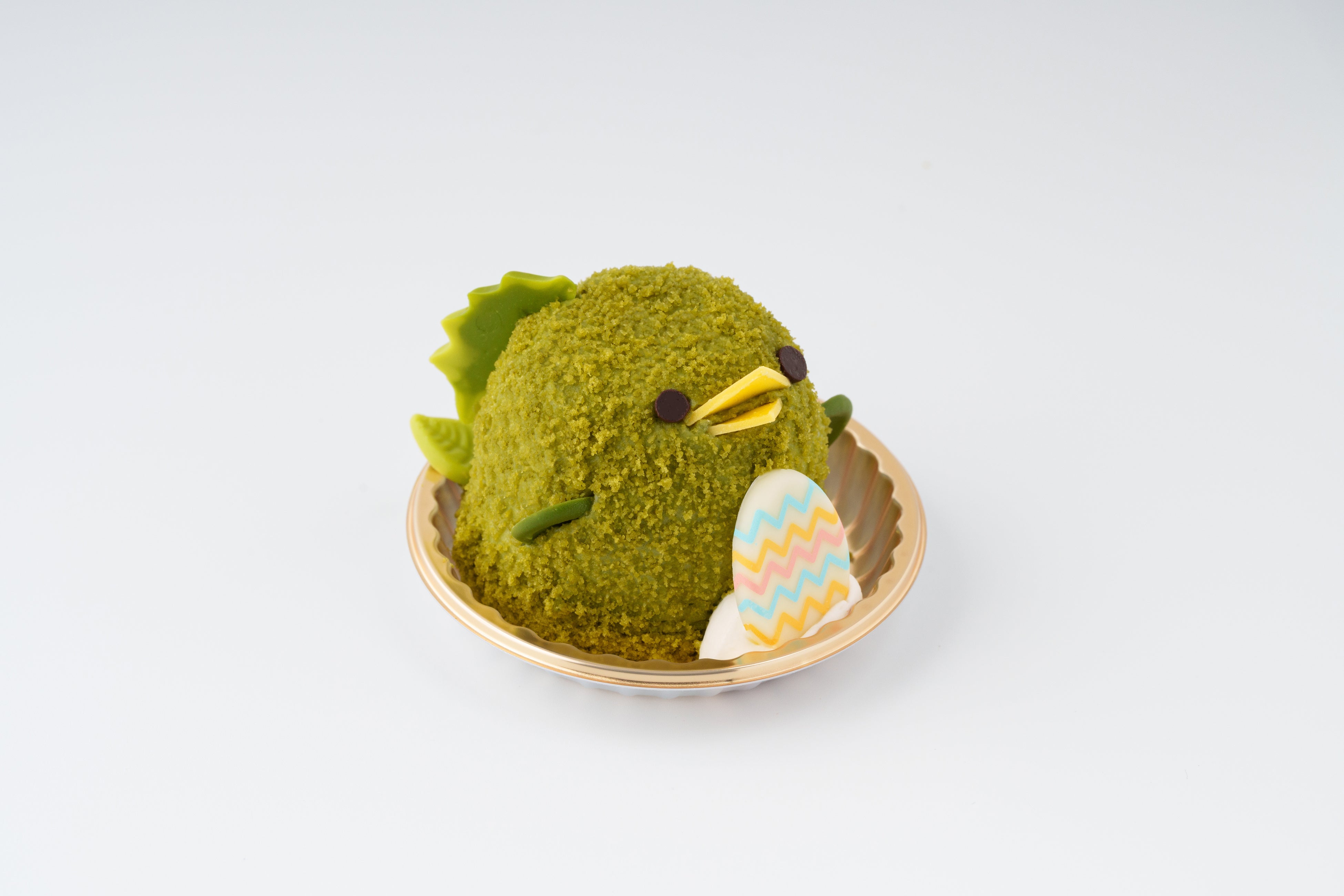 名古屋コーチン卵を使用した濃厚なプリンと、井村屋の上品なあんこを使った羊羹(ようかん)を、香り豊かな抹茶のババロアでやさしく包み込みました。背中には、福井の恐竜をイメージしたとげとげのチョコレートと、恐竜の卵を思わせるチョコレートのオーナメントをトッピング。見た目も味わいも楽しめる、夏限定の特別なぴよりんです。