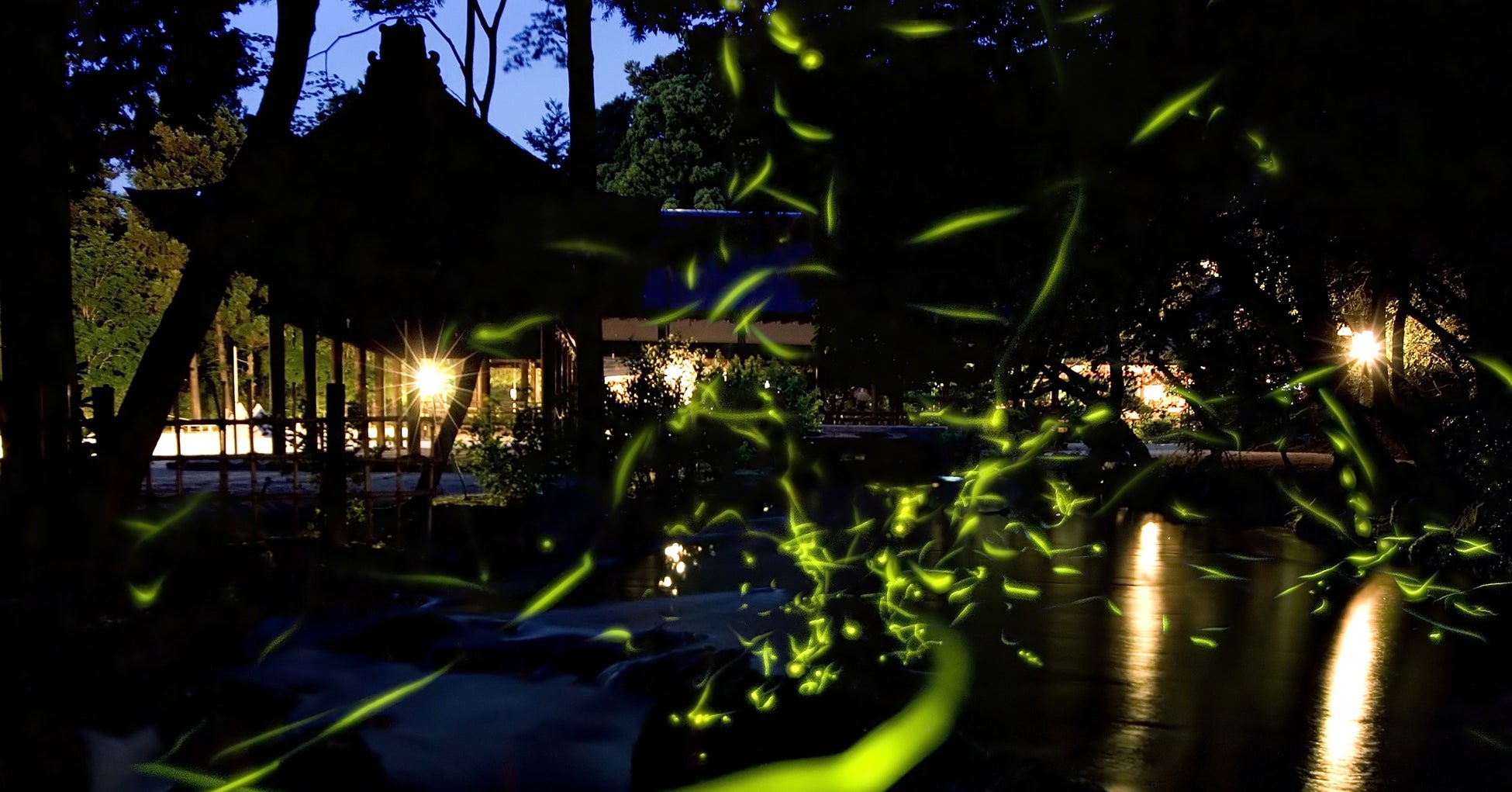 ・「神職による講話」(神山湧水、神社における蛍保全活動、「水」が結んだご縁) ・「夜間特別参拝」(国宝「本殿、権殿」を含めた特別参拝) ・「蛍鑑賞ツアー」(学生による「ならの小川」での蛍鑑賞ご案内) ・「夜カフェ体験」(重要文化財「庁屋」での和菓子と楽しむ神山湧水珈琲会) ※和菓子:亀屋良長オリジナル「烏羽玉・錦玉セット」 ※雨天時は、蛍鑑賞ツアーは中止とし、「庁屋」にて蛍の動画をご鑑賞いただきます |