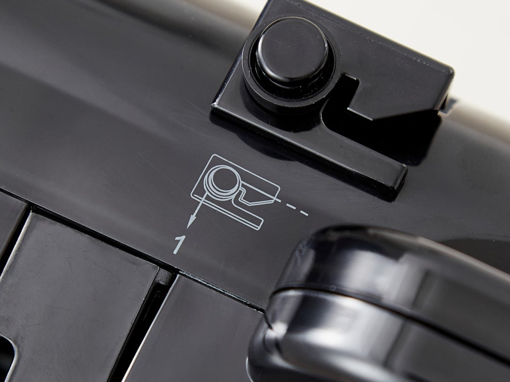 糸通しは矢印とイラストのガイドに沿ってセットするだけで完了し、返し縫いはワンタッチ操作、下糸巻きも自動で行えます。複雑になりがちな準備工程を簡略化することで、購入後すぐに使い始められる設計としました。