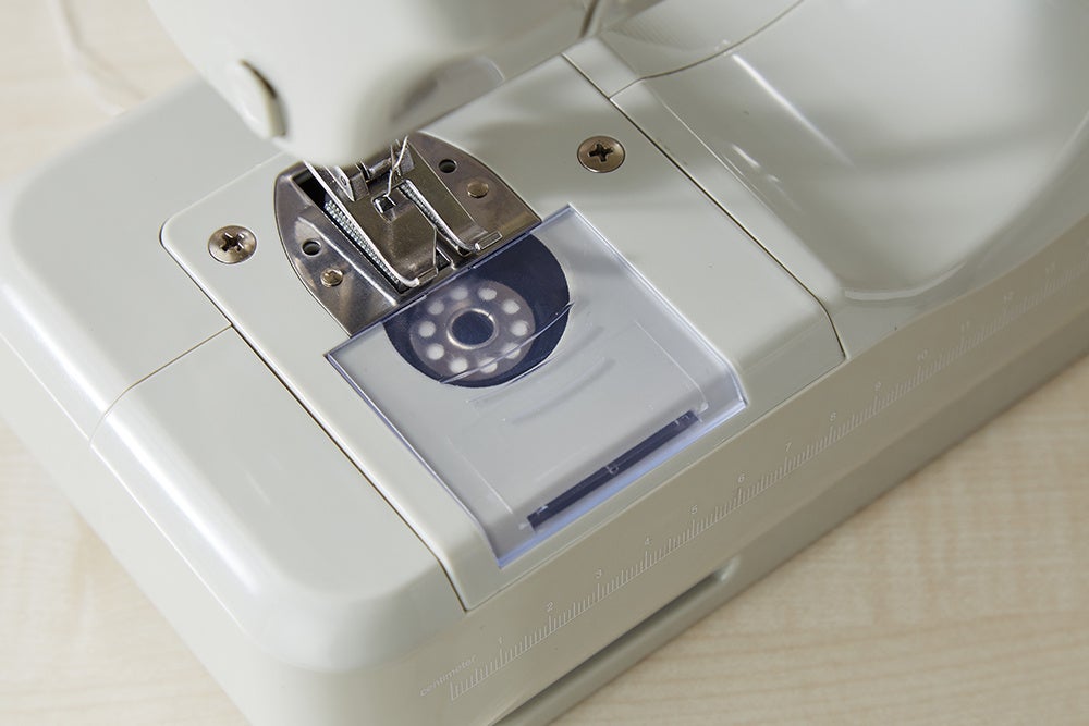 袖口や裾などの縫製もスムーズに行えます。透明ボビンカバーで下糸残量も確認可能です。
