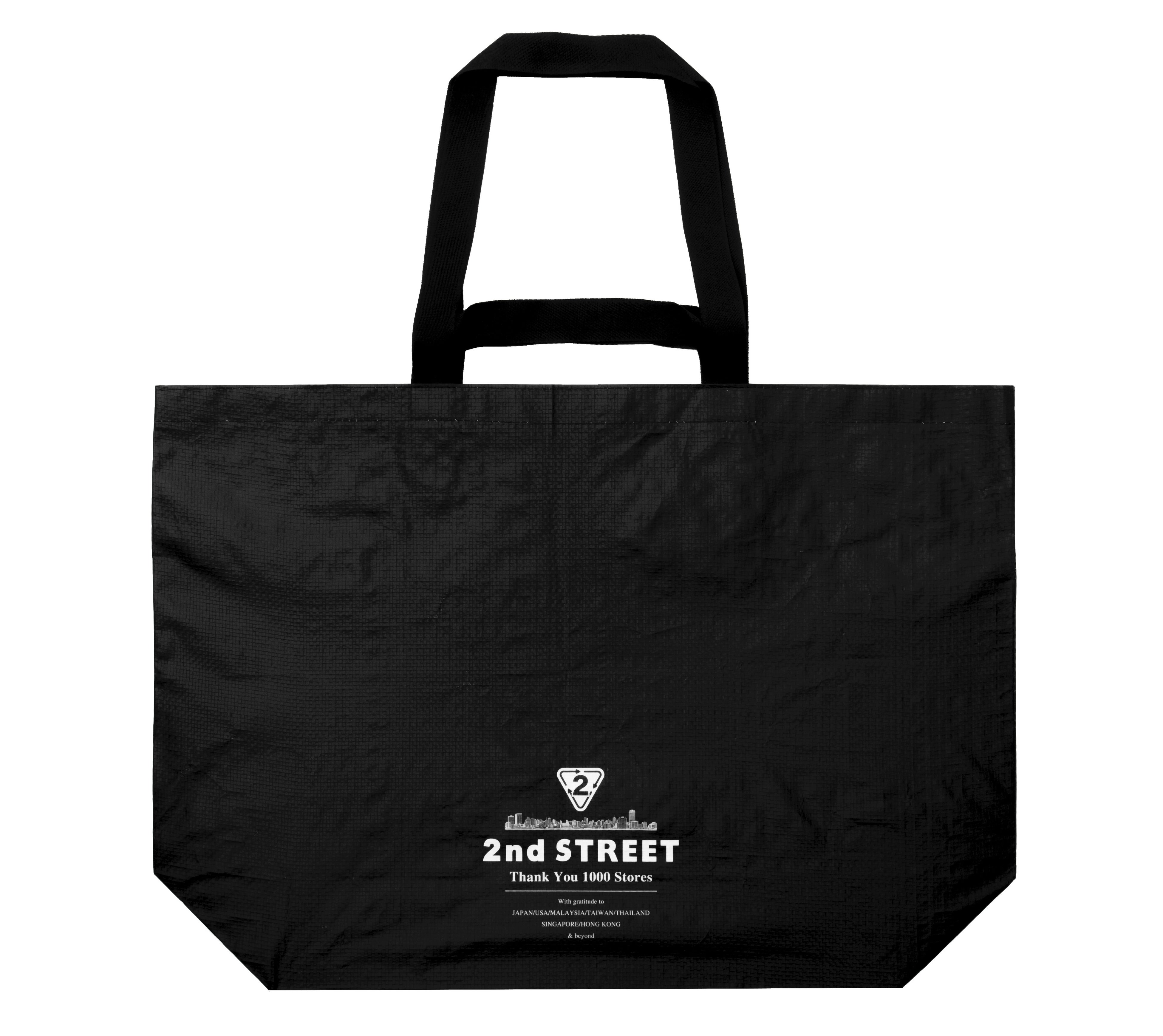 このたび開催する『世界1,000店舗達成SALE』では、セカンドストリートで販売する衣料品を20%オフでご購入いただけます。また、税込2,000円以上(割引・値引前)お買い上げの際、セカンドストリートの公式アプリをダウンロードもしくは画面提示いただいたお客さまに、オリジナルのセカストバッグ、セカストステッカーのいずれか一つをプレゼントします。