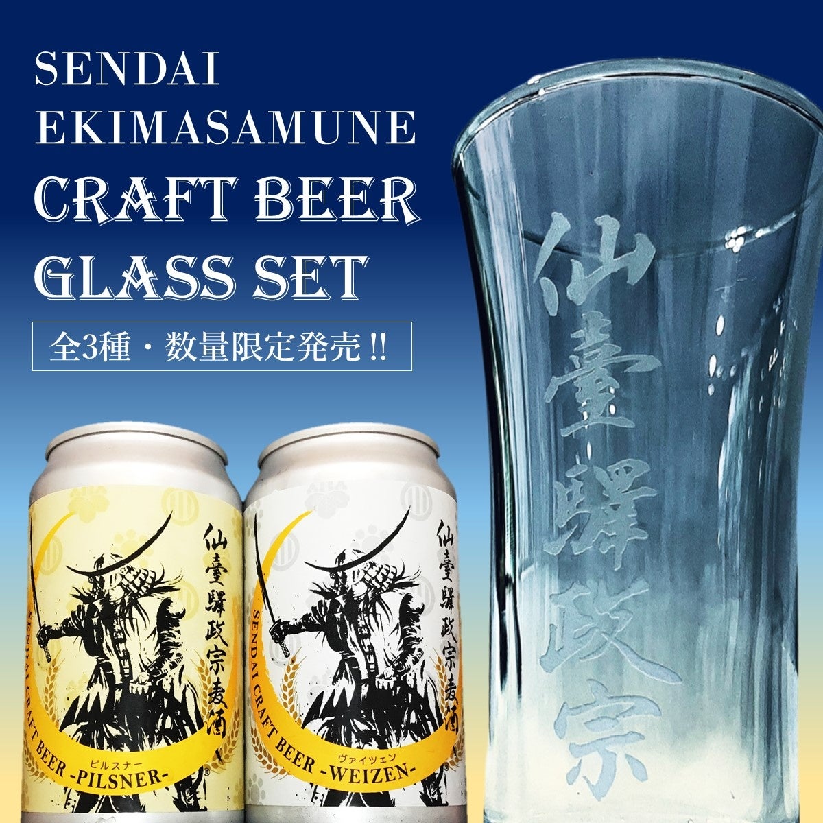 (3)仙臺驛政宗麦酒5本+オリジナルグラス1個セット