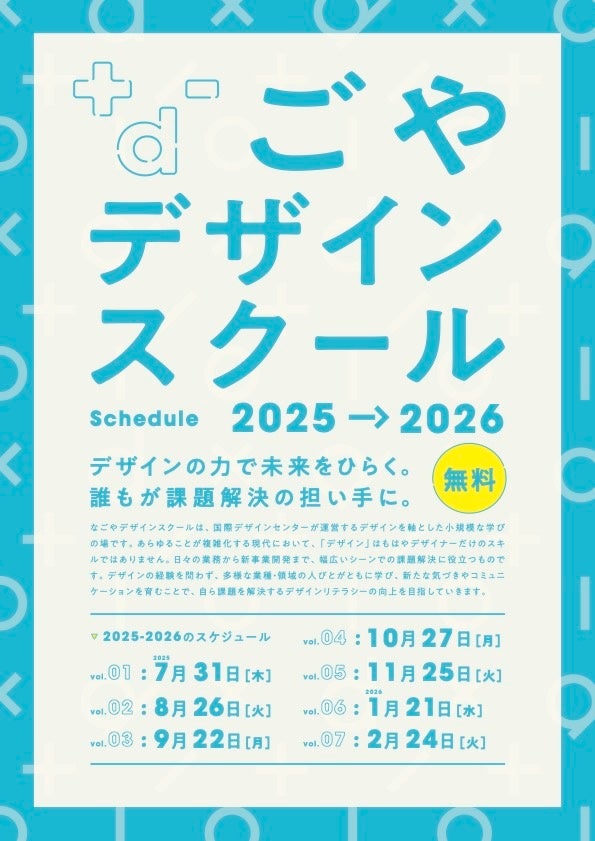 なごやデザインスクールは、国際デザインセンターが運営するデザインを軸とした小規模な学びの場です。あらゆることが複雑化する現代において、「デザイン」はもはやデザイナーだけのスキルではありません。日々の業務から新事業開発まで、幅広いシーンでの課題解決に役立つものです。デザインの経験を問わず、多様な業種・領域の人びとがともに学び、新たな気づきやコミュニケーションを育むことで、自ら課題を解決するデザインリテラシーの向上を目指していきます。