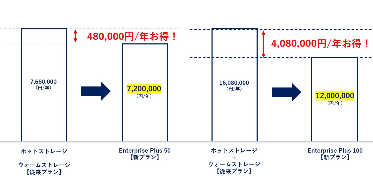 ・エンタープライズプランにウォームストレージを追加するよりも最大で34万円お得に