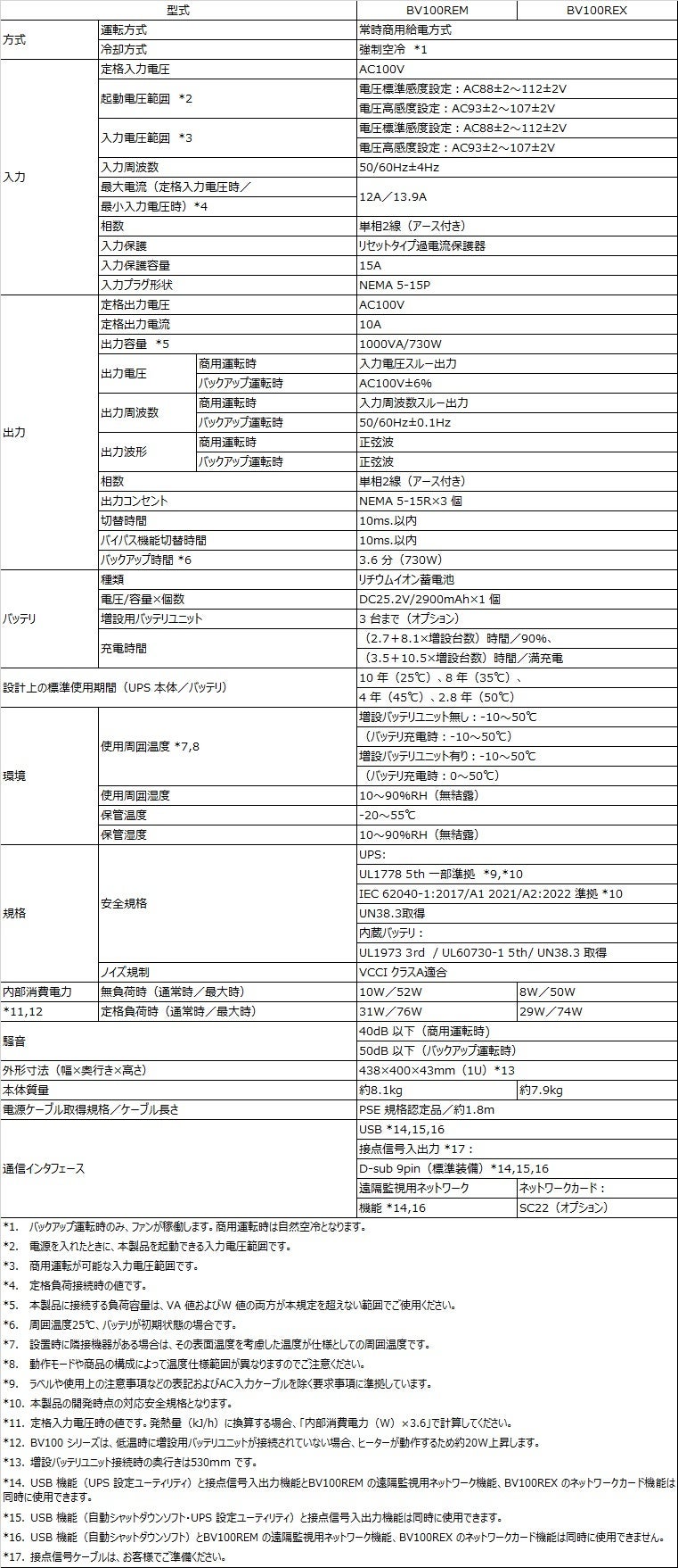 OSSはこのようなニーズに応えるため、”1U”の薄型設計と使用環境温度:-10~50度の厳しい温度環境下でも使用できる耐環境性を備えることで様々な設置シーンに対応し、ユーザーの皆様からご好評いただいている「BVシリーズ」に、新たに接続機器の拡張性と長時間バックアップも兼ね備えた「BV100REM/BV100REX」を追加します。