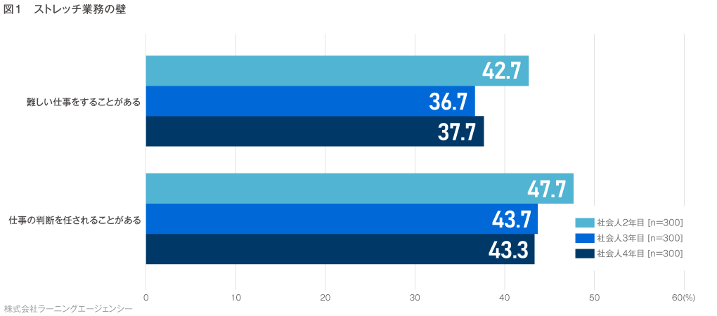 *本調査を引用される際は【ラーニングエージェンシー「若手社員の意識調査(社会人2年目~4年目の直面する壁ストレッチ業務編)】と明記ください