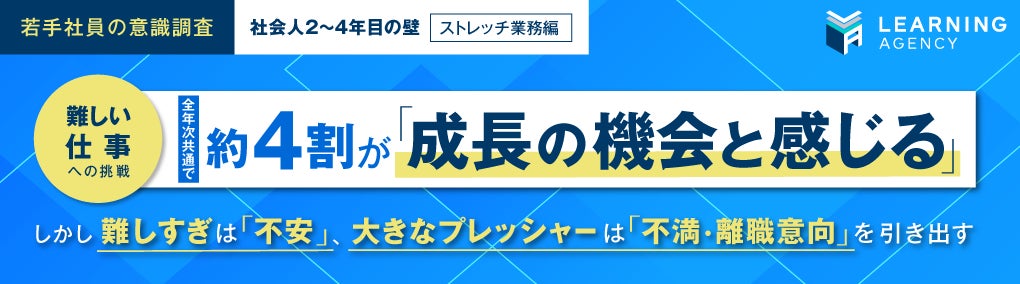 難しい仕事への挑戦、全年次共通で約4割が「成長の機会と感じる」。しかし難しすぎは「不安」、大きなプレッシャーは「不満・離職意向」を引き出す