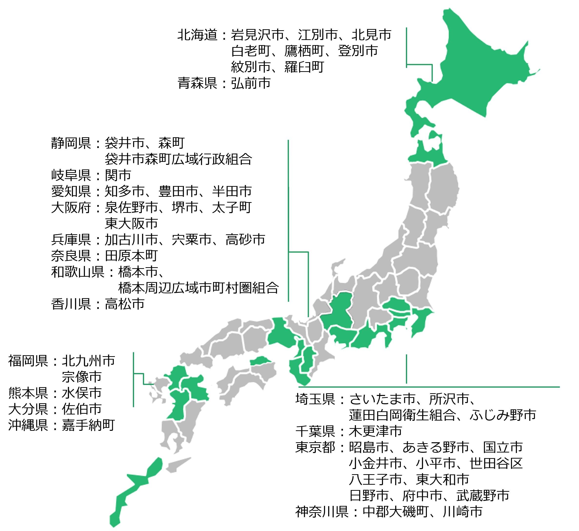 2022年8月1日時点で50箇所の自治体と協定や覚書を締結し連携し、リユースに関する啓発及びリユース事業を推進しております。