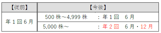 ※5,000株以上保有の株主さまには、上記ポイントを半分ずつ年2回(6月・12月)に分けて進呈いたします。