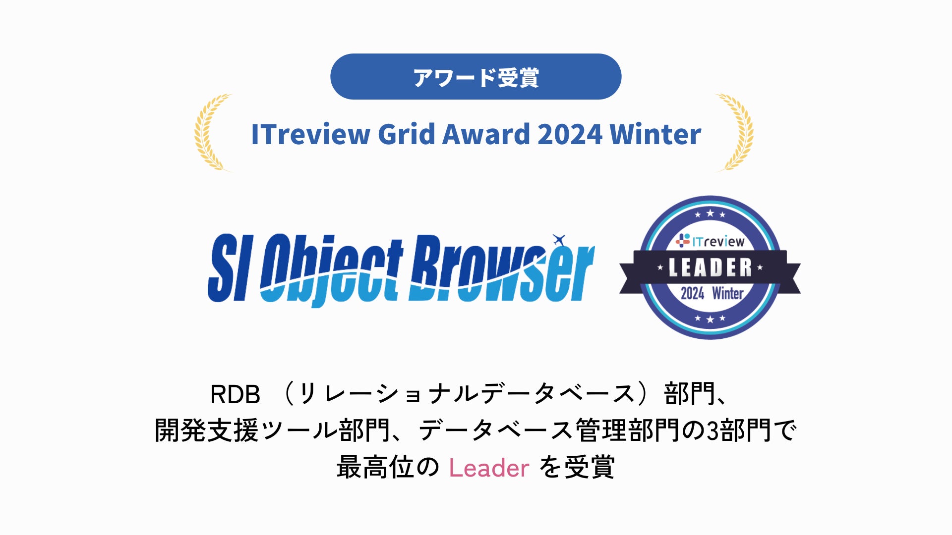 「SI Object Browser」が「ITreview Grid Award 2024 Winter」の3部門において最高位のLeaderを受賞