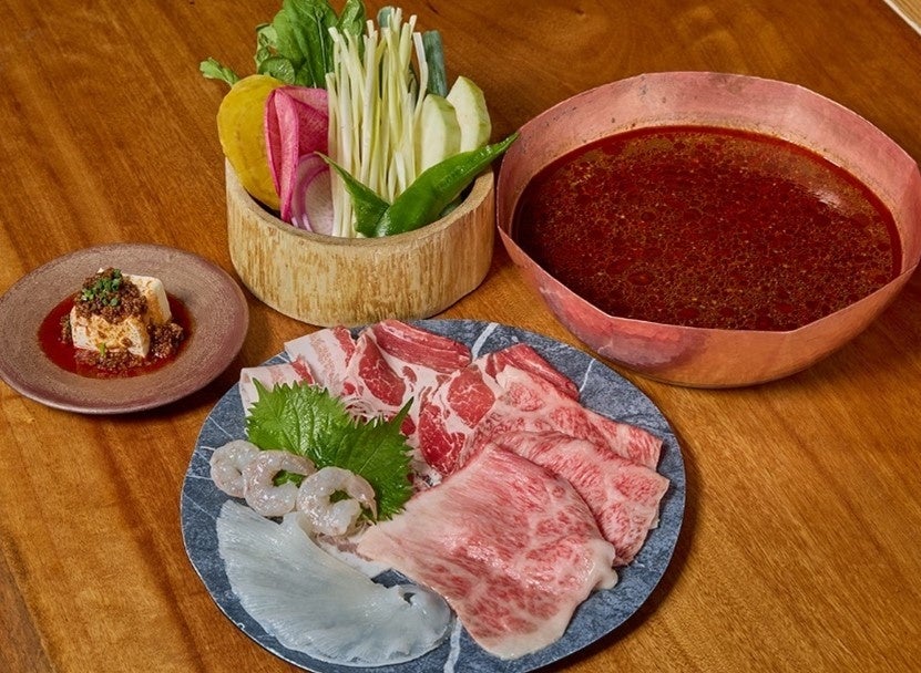 京中華の名店「にしぶち飯店」×「KINTAN」にしぶち飯店 秘伝の火鍋出汁のしゃぶしゃぶ白金豚の蜂蜜チャーシューとブルーチーズ ふかひれと担担麺のコース8/13(火)~9/30(月)の期間限定販売