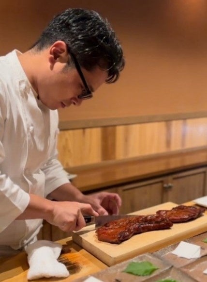 その味を中華料理歴25年、元トゥーランドット游仙境の料理長 高橋保明が再現いたしました。チャーシューには旨みの強い、岩手県産 白金豚肩ロースを使用。火入れ・味付けを均等に行うため、熟練の技術を用いてカットし成形を行い、にしぶち飯店のレシピに基づき、秘伝のタレで約12時間漬け込みます。ご注文いただいてから調理し、焼き立て、アツアツの状態のチャーシューにブルーチーズを添えて、チーズがとろけ出す絶妙なタイミングでお客様に提供いたします。パリッと焼き上げたチャーシューと蜂蜜、ブルーチーズのコクが最高に美味しい逸品です。