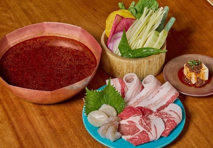 この夏、しゃぶしゃぶKINTANで出会う、にしぶち飯店 秘伝の火鍋出汁。KINTAN代表の鳴坂が、一度食べて惚れ込んだにしぶち飯店の料理。少しでも多くの人に“にしぶち飯店の味”を知ってもらいたいという想いを、西淵氏に伝え、意気投合。今回のコラボレーションメニューが実現いたしました。 にしぶち飯店の門外不出のレシピの数々がしゃぶしゃぶKINTANでお楽しみいただけます。辛さと旨味の究極バランスの火鍋スープを飲み、和牛と京野菜のしゃぶしゃぶをたらふく食べる、贅沢すぎるコラボレーションメニューは、より多くの方に、にしぶち飯店の美味しさを知ってもらいたいので、ランチタイムにも提供いたします。