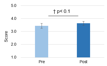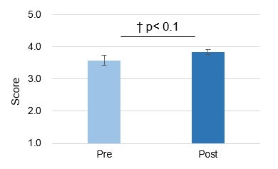 アプリ利用前後のアンケート調査にて、レジリエンス(ストレス耐性)の変化を調べたところ、有意に向上している傾向がみられました。