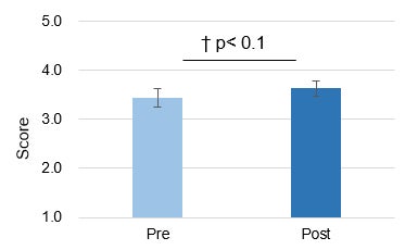 アプリ利用による仕事のパフォーマンスへの効果について、レジリエンス同様に、利用前後でアンケート調査を行ったところ、駐在員特有のパフォーマンス(異文化環境での人間関係構築力、言語・文化理解に係るパフォーマンス)が有意に向上している傾向がみられました。