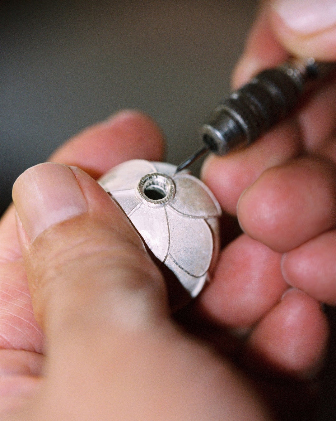 三代目のエナメル職人であるシオン・ソンタオの祖父は清朝時代に宮廷のクロワゾネ工房に勤めて技術を学び、父は1969年に一家の工房を設立しました。現在シオンは、彼の特色である細い針金で驚くほど複雑なディテールを作り込んだジュエリー、時計の文字盤、伝統的な器、彫刻など、さまざまなクロワゾネ作品を制作しています。