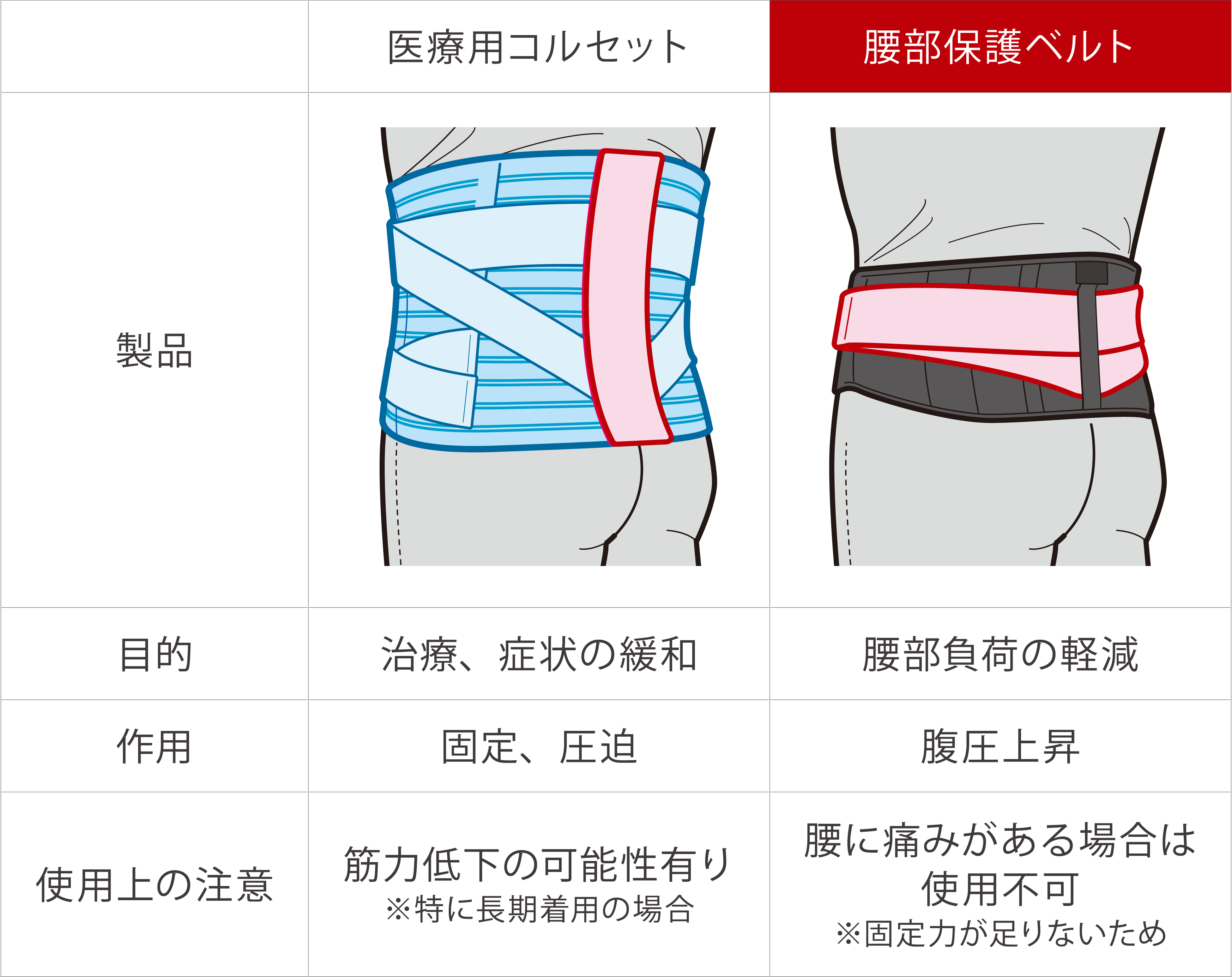 医療用コルセットと腰部保護ベルトの違い