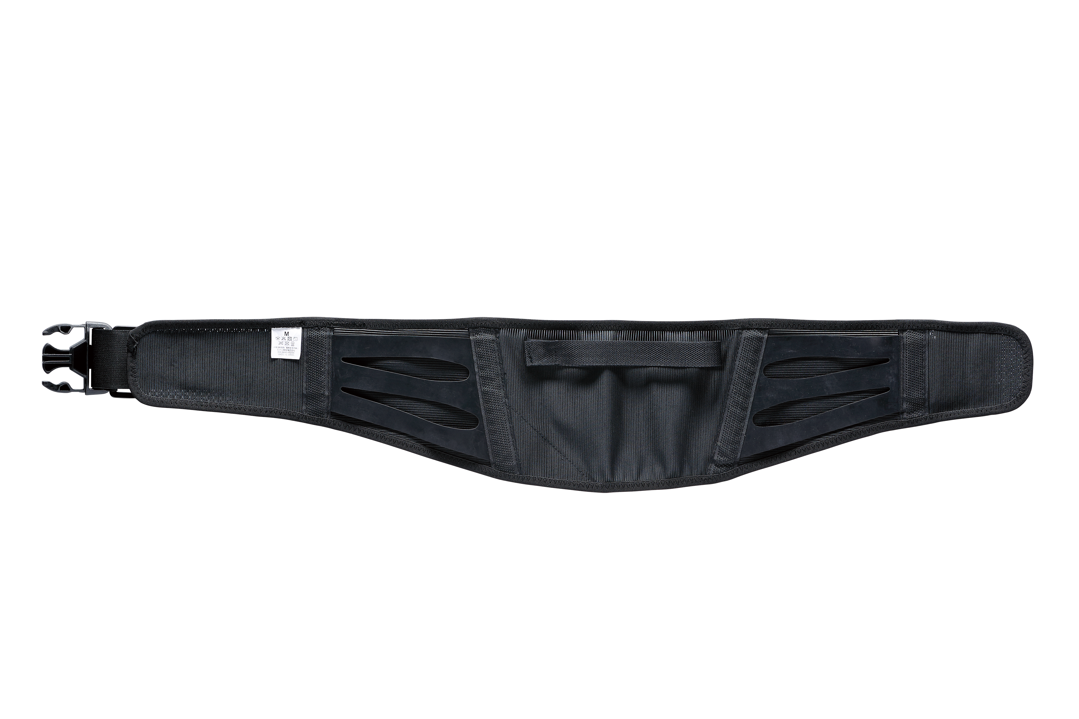 従来はパンチング加工した生ゴムを両サイドに配置し、優れた伸縮性とホールド感が評価されていましたが、作業現場では「暑い」「蒸れる」という声があり、課題となっていました。「koshiina PRO」では生ゴムを継続採用しながらも、帯状のベルトを3本ずつ配置する新仕様に変更し、しっかりとしたホールド力を保ちつつ通気性を向上させています。