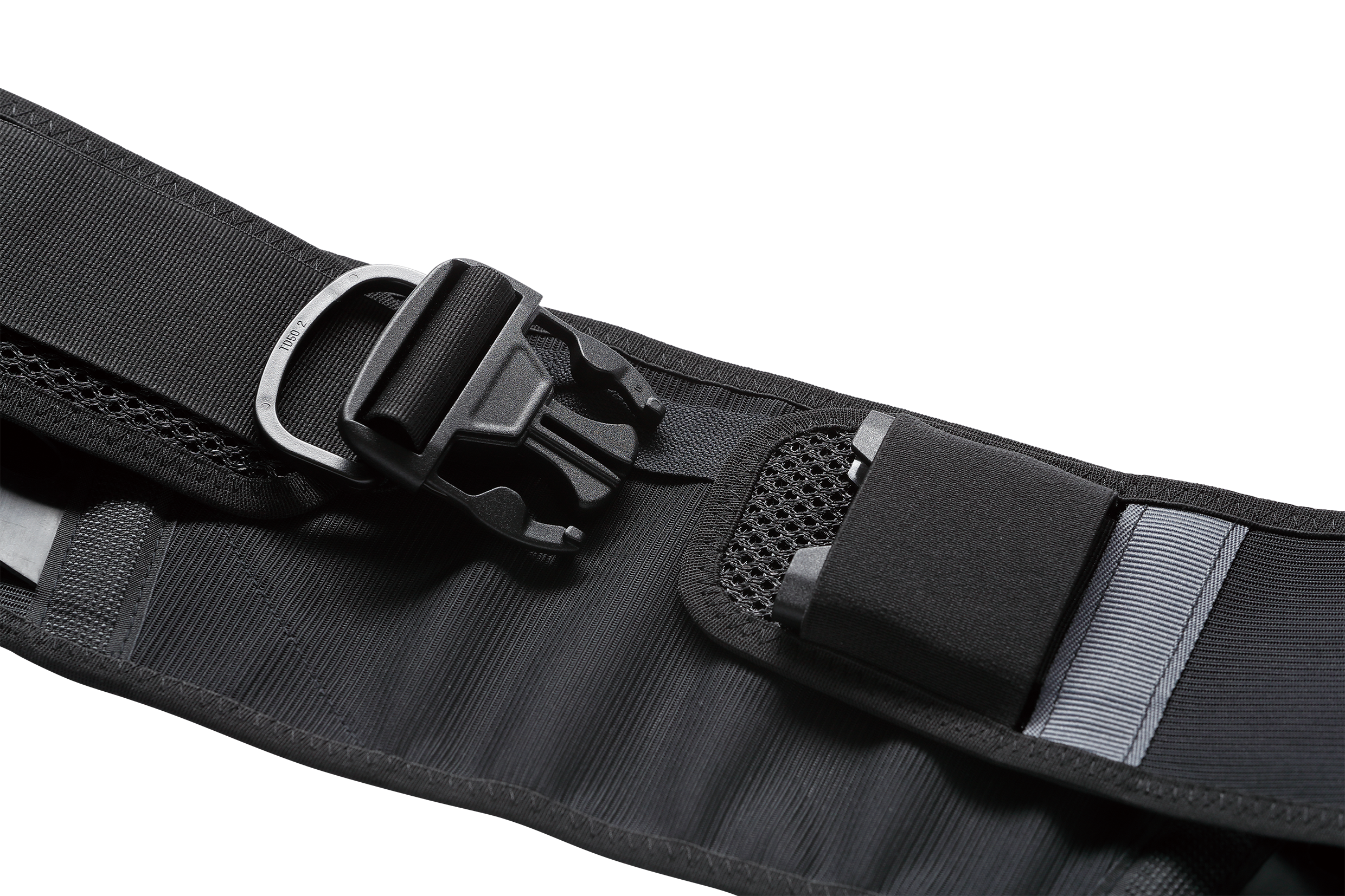 従来品は合皮製の細いベルトを2本通し、角カンで締める構造のため、装着に時間がかかる・ベルト切れが起きやすいなどの問題がありました。「koshiina PRO」では、幅広ベルト+樹脂製ワンタッチバックルを採用することでワンアクションでの脱着が可能になりました。作業効率が飛躍的に上がると同時に、接続部の耐久性も大幅に向上しました。
