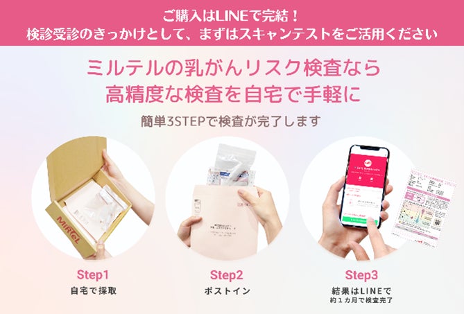 当社の連結子会社である株式会社ミルテル(本社:広島県広島市、代表取締役社長:加藤 俊也 以下、ミルテル)は、タメニー株式会社 (本社:東京都品川区、代表取締役社長:栗沢 研丞 以下、タメニー)が運営する「ANNIVERSARY CLUB powered by Tameny(以下、AC)」の会員様限定優待商品としてLINE完結型の乳がんリスク検査「スキャンテスト 乳がん」の販売を開始いたします。