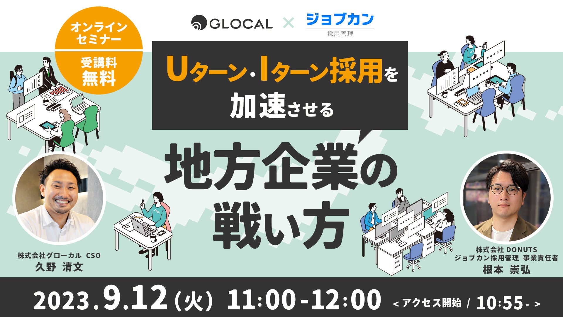 本セミナーでは、地方中小・中核企業の経営支援で豊富な実績を持つグローカルと、採用業務を効率化するノウハウを持ち「ジョブカン採用管理」をはじめとしたクラウドERPシステムを提供するDONUTSが、地方企業がUターン・Iターン採用を成功させるためのポイントをお伝えいたします。