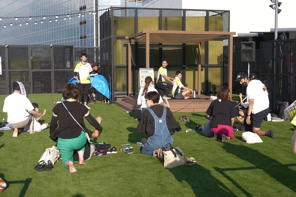 イベント中盤には夏休みを満喫する為の「ケガをしない身体作り」として、Dr.stretch天満橋京阪シティモール店の松末トレーナーが登場し、玉田氏と一緒に参加者へペアストレッチのレクチャーを行った。