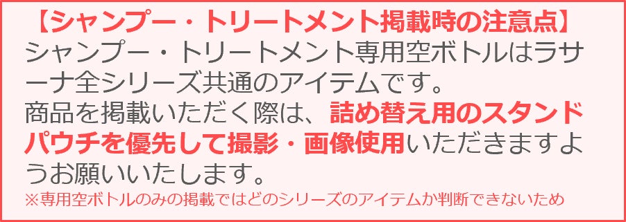 ※シャンプー、トリートメント詰め替え用は別途、ラサーナ全シリーズ共通の専用空ボトル(495円[税込])が必要となります。
