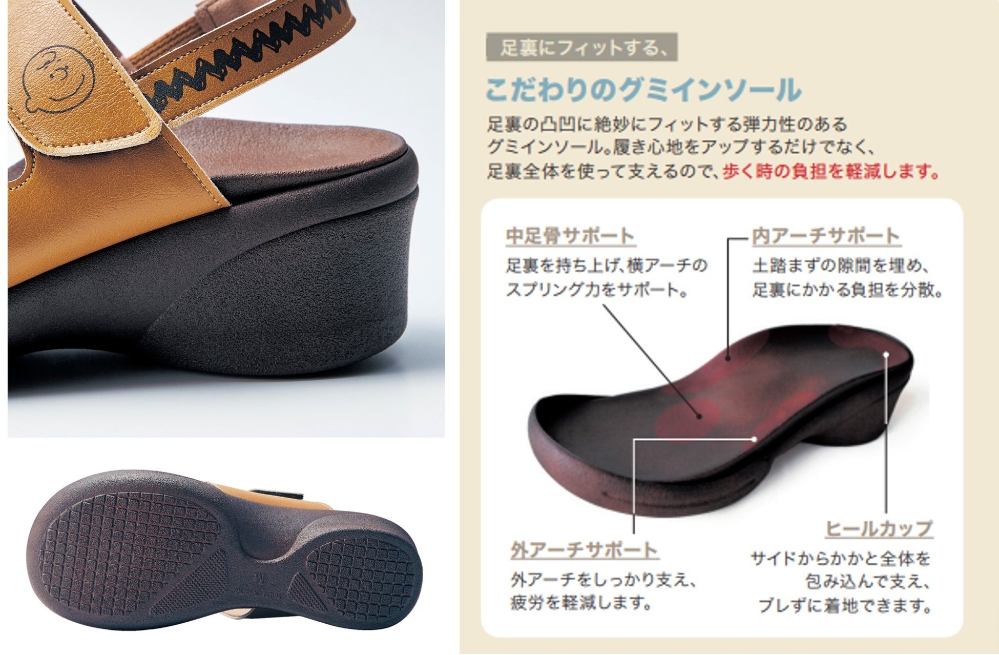 ●弾力性のあるグミインソールは、足裏の凹凸にフィットして履き心地をアップするだけでなく、