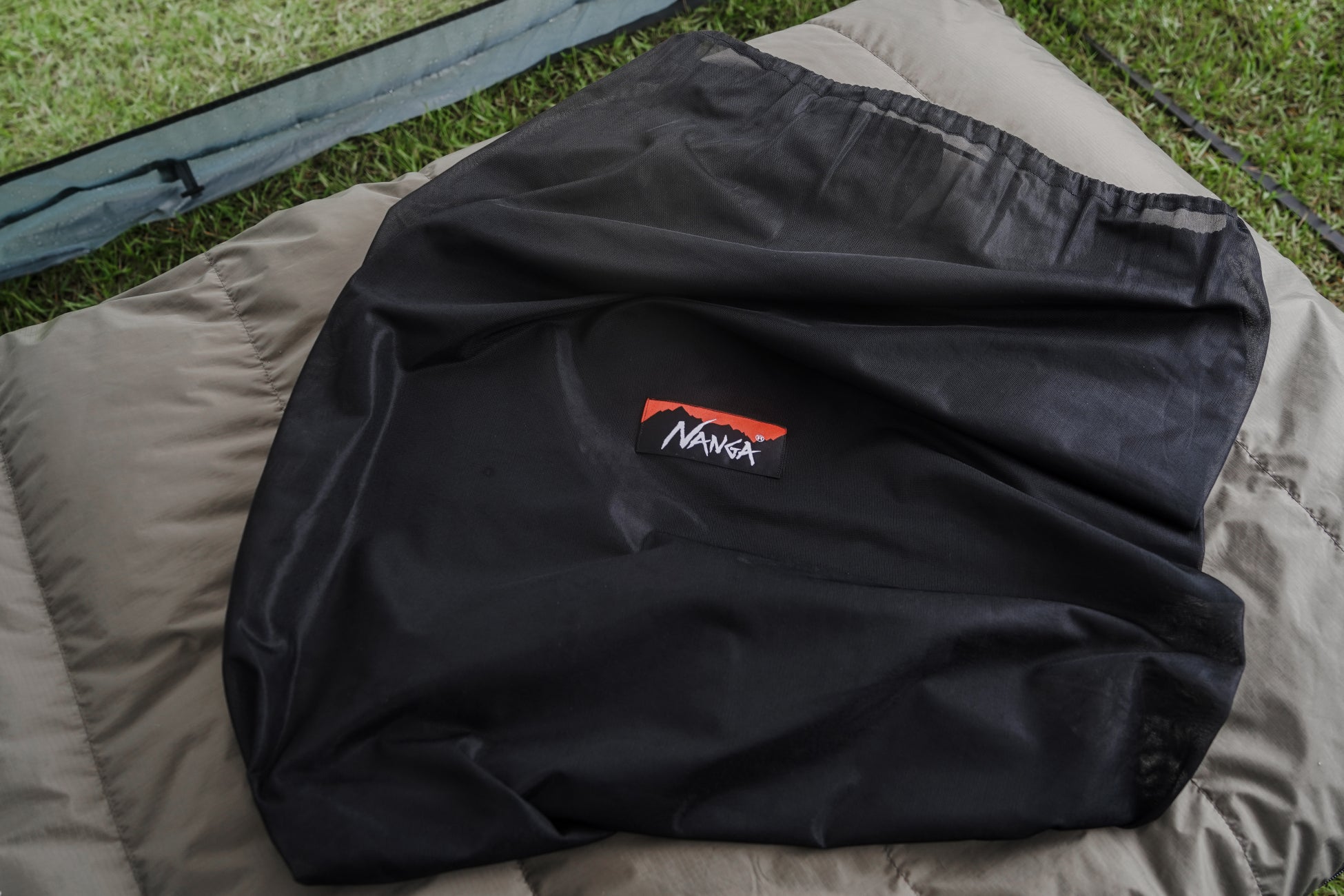 さらに、NANGA独自の「オーロラテックス®」素材を使用することで、優れた耐水性と透湿性を実現。そのため、雨の日やテント内の結露によるダウンの濡れを心配することはありません。また、強度のある生地のためスリーピングバッグカバーを併用せずに使用できます。