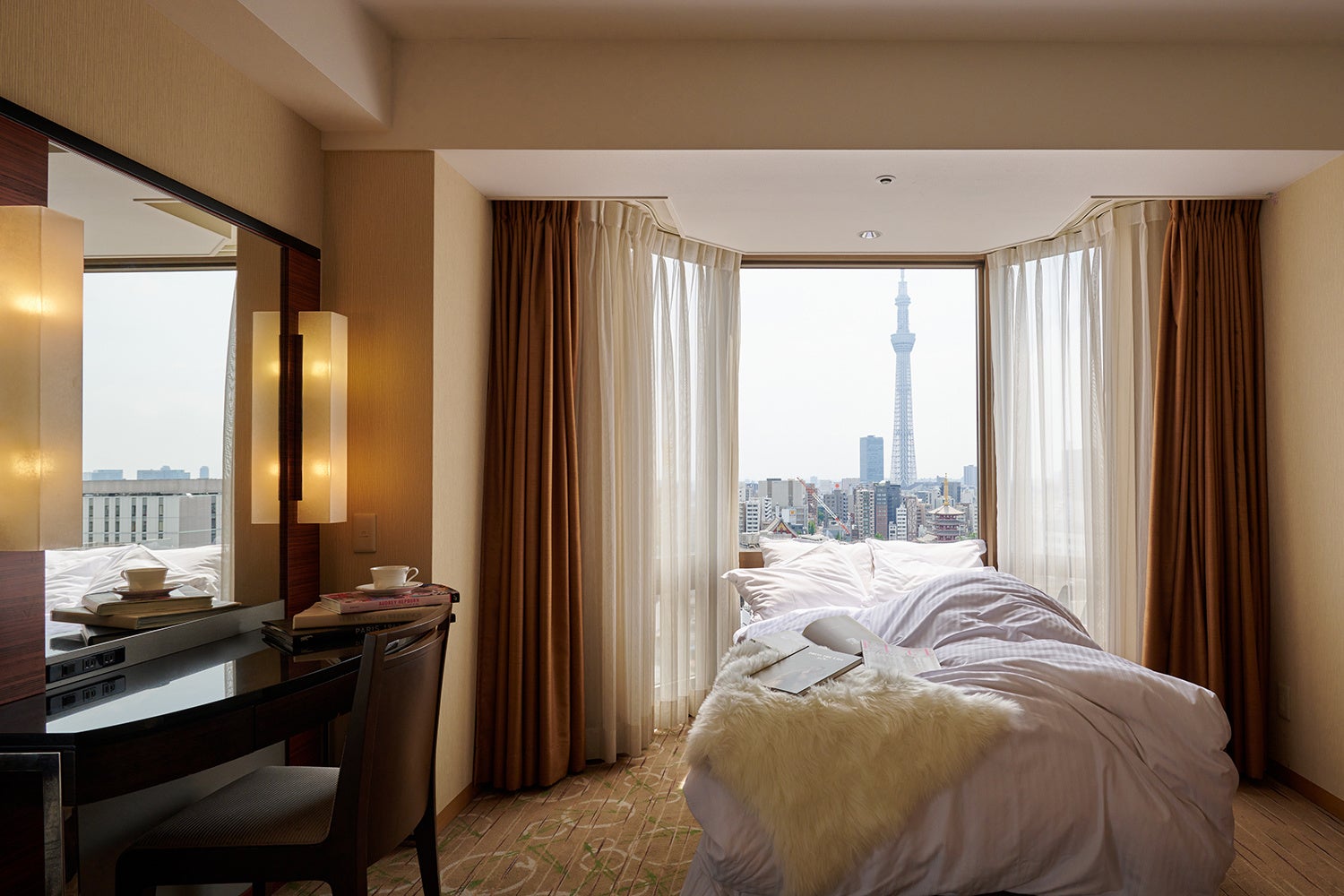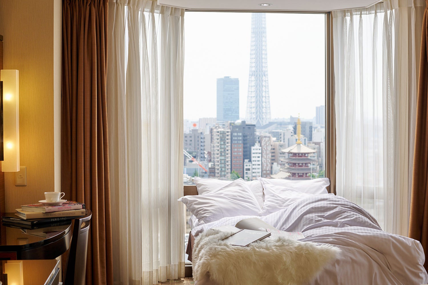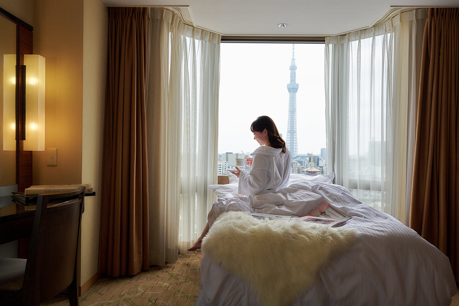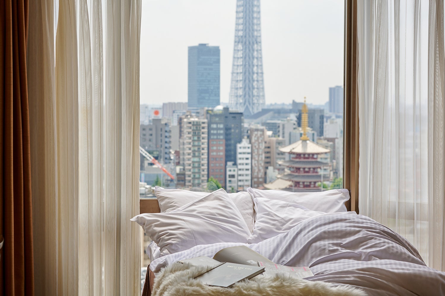 天空のベッドの外には、東京スカイツリー®と浅草を一望できる当ホテルならではの絶景が広がります。