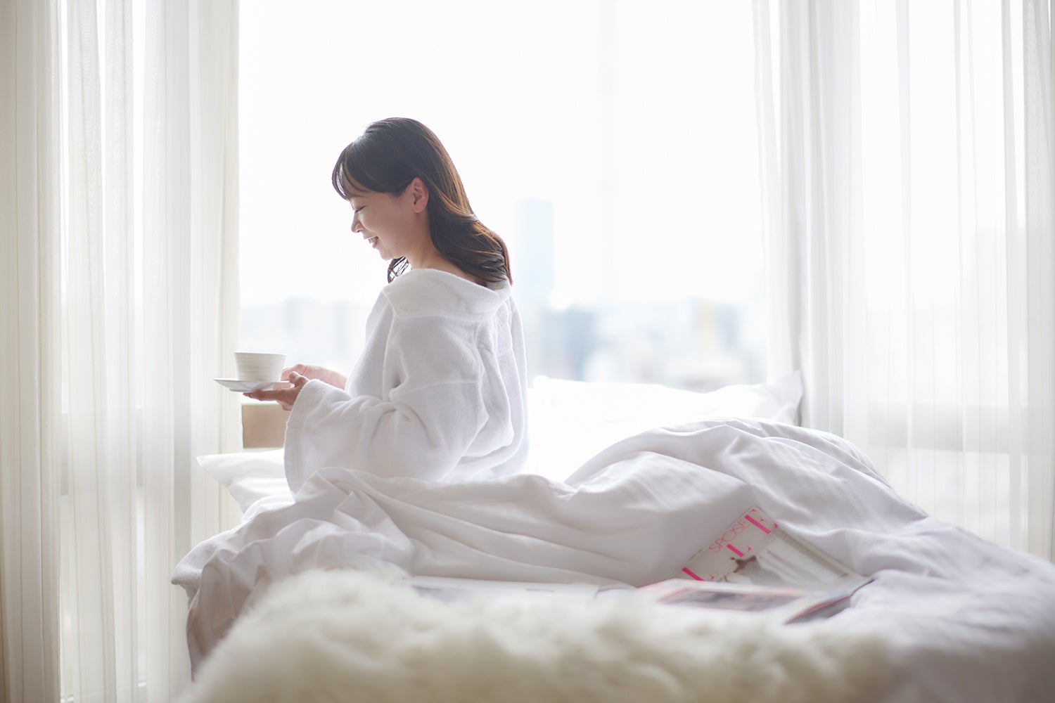 白くてふかふかのベッドの上で、外を見ながらごろごろしたり、ティータイムを楽しんだり。