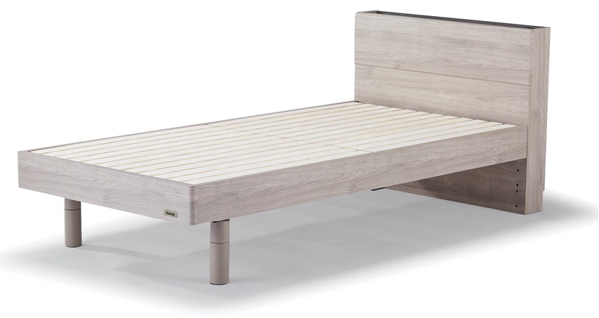 すのこ床板で通気を確保し、3段階に高さ調節も可能。スタイリッシュな木目柄で寝室を癒しの空間へと彩るベッドフレームです。