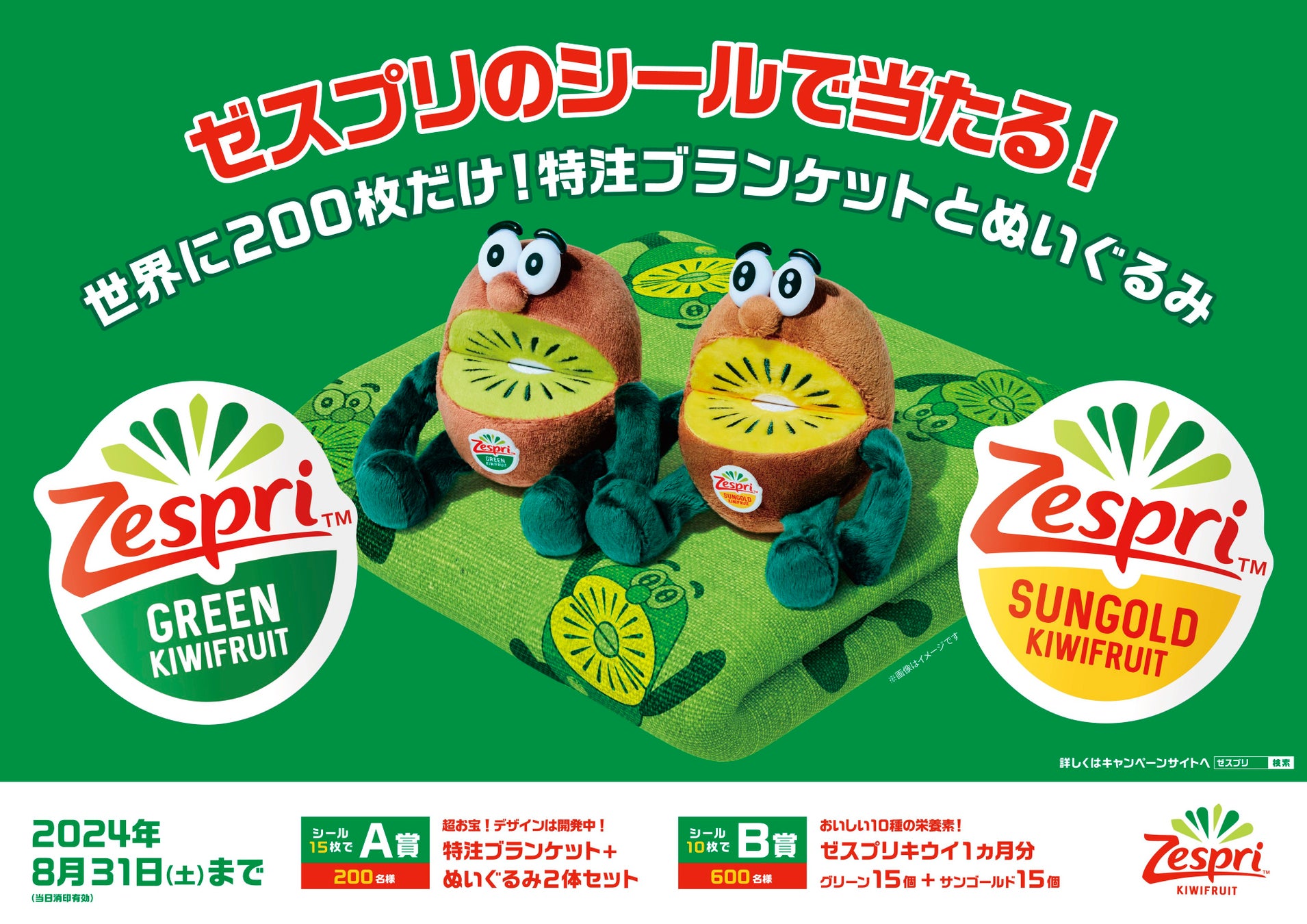 キウイブラザーズの特注ブランケットとぬいぐるみ!などゼスプリのシールで800名様にプレゼント 世界に200枚だけ!特別デザインのブランケットなどが当たる シールを集めて当たるキャンペーン実施中