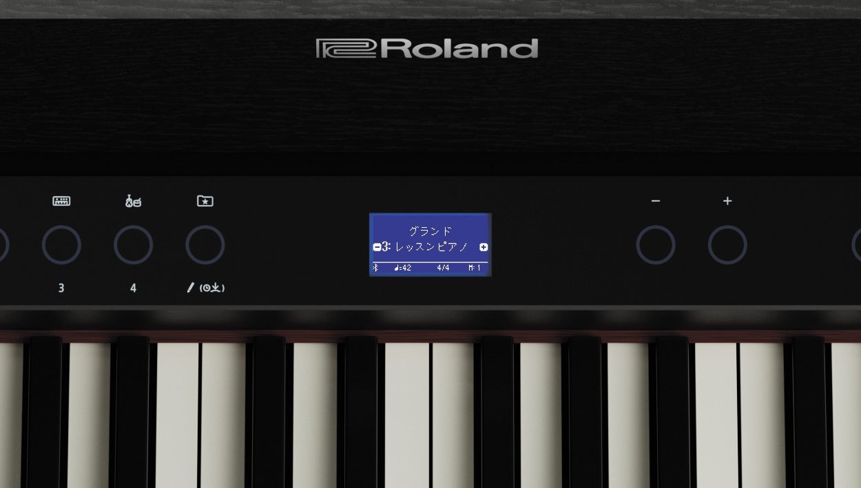 オリジナル無料アプリ「Roland Piano App」に対応。練習履歴を表示するタイムライン、音当てゲーム、伴奏機能など、ピアノのレッスンに役立つ楽しい機能が充実しています。