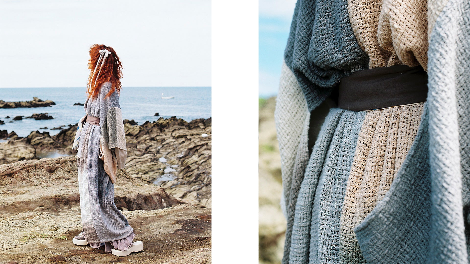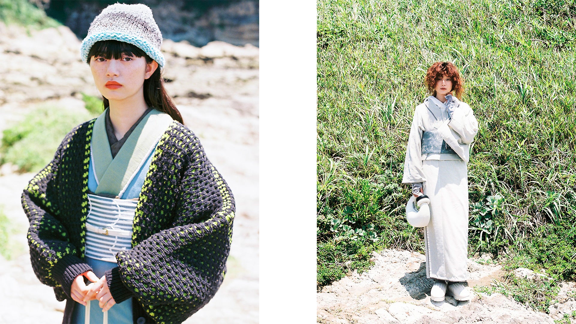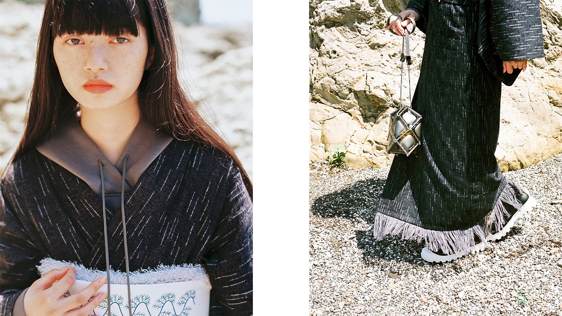 『いつもの自分から新しい自分に出会った時に抱くワクワクや発見や驚きを、新たなアイディアから創り出した自由なきものとスタイリングで提案していきます。この秋冬のコレクションでは、かすり糸のかわいさを引き出したり、普段使わない素材の糸を使ったりと、さんちの方々と一緒に常識を飛び越えるものづくりに挑戦しました。』