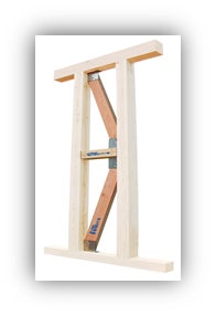 新・つくば耐力壁は壁幅(450mm・455mm・500mm)で運用できる狭小耐力壁です。許容応力度計算をすることで、一般的な壁と同等以上の耐力(相当壁倍率:4.13倍/m~6.91倍/m)が確保できます。プランニングの自由度と空間設計の可能性を拡げ、大開口や壁の少ないリビングの演出、狭小敷地でも余裕をもったガレージなどが実現できます。筋かい耐力壁ですので取り付けも簡単で、初めての職人さんでも迷わずに施工ができます。