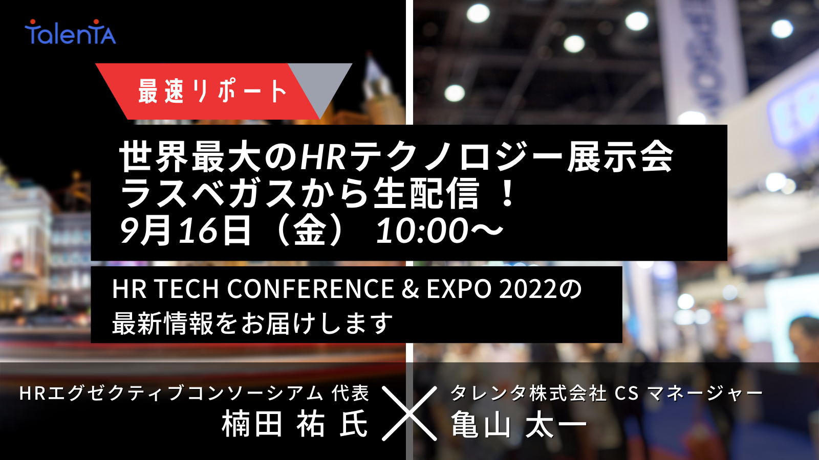 【開催決定:ラスベガスから生配信】9/16(金)10時~タレンタが世界最大のHRテクノロジー展示会「HR Tech Conference & Expo 2022」のハイライトを現地からお届け