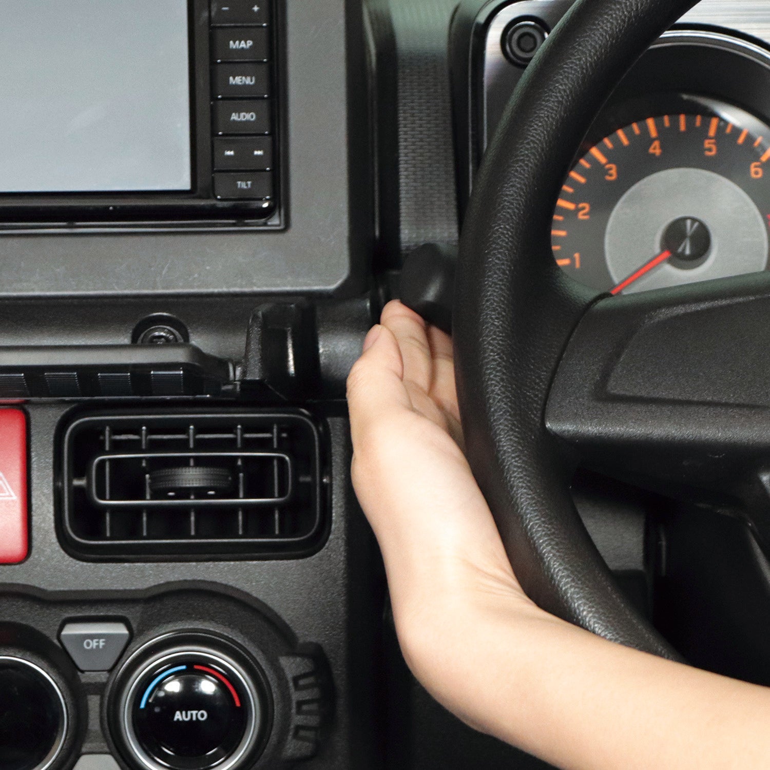 数あるクルマの中でも、オリジナルのカスタマイズを楽しむユーザーが多いジムニー/ジムニーシエラ。この度、センターエアコン上部の純正パネルを取り外しできることに着目し、ジムニーライフを充実させる製品として開発いたしました。