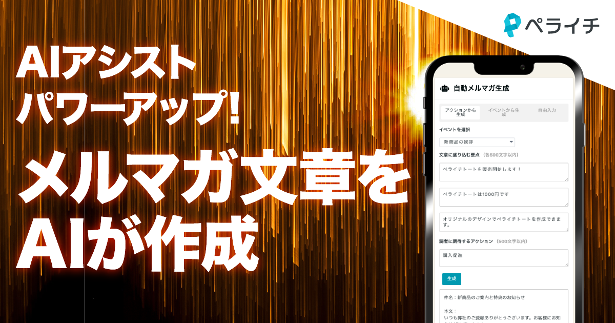 ペライチのAI機能がアップデート!AIがメルマガ文章にも対応し自動作成&すべての有料プランで利用可能に