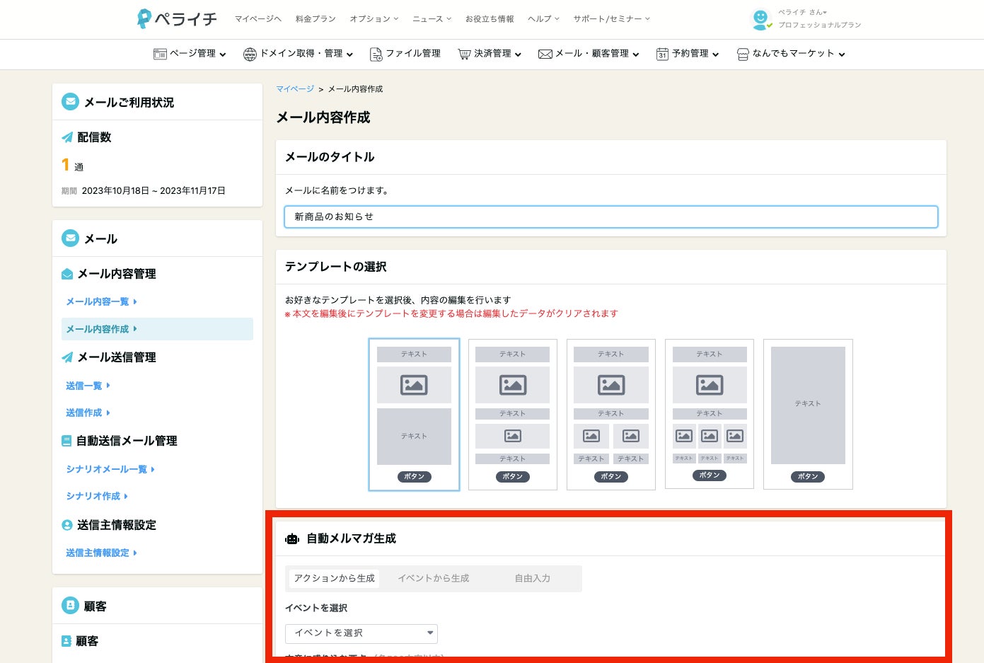 ペライチでは、ノーコードでHTMLのメールが作成できるメールマガジン機能を提供しています。