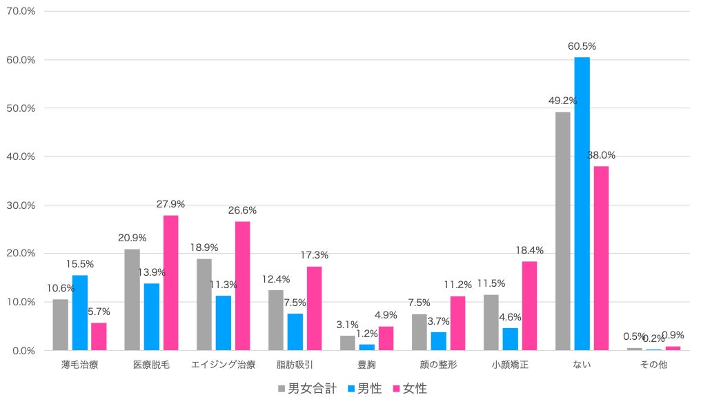 トップは「ない」(60.5%)。続いて「薄毛治療」(15.5%)、3位には「医療脱毛」(13.9%)
